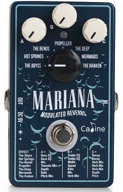 Марианская впадина — самая глубокая точка Тихого океана. Это мир, который до сих пор остаётся малоизученным — мы знаем о нём меньше, чем о космосе. Педаль Caline CP-507 Mariana объединяет 7 «внеземных» ревербераторов с модуляцией в одном компактном корпусе, предлагая огромный творческий потенциал.