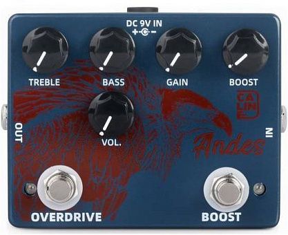 Слева – овердрайв Caline CP-12 Pure Sky. Может быть использован и как классический transparent овердрайв, и как эквалайзер для формирования тона.