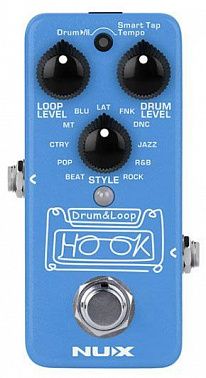 HOOK Drum & Loop (NDL-3) — это мини-педаль лупер с автоматическим определением темпа. Просто запишите фразу, а затем добавьте синхронизированный ритм барабанов. Или вы можете использовать функцию Smart Tap Tempo и воспроизвести барабанный ритм, а затем начать записывать цикл фразы. HOOK интеллектуален и прост в эксплуатации.
