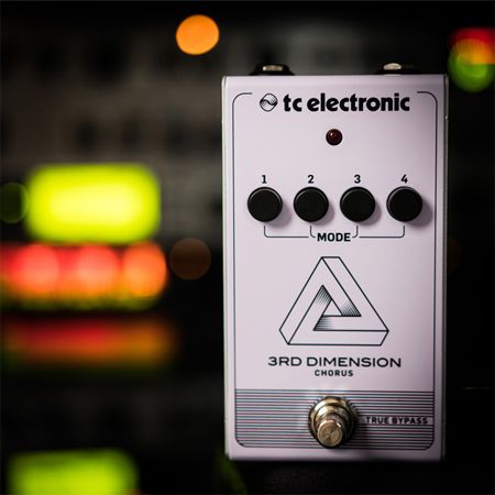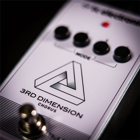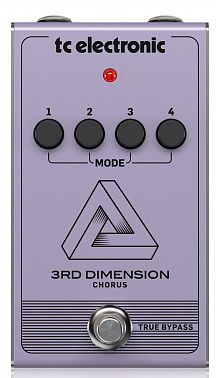 3RD DIMENSION CHORUS — это уникальный тип эффекта «motionless» хорус, воспроизводящего мгновенно узнаваемый чистый звук 80-х. Насыщенный и сочный 3RD DIMENSION CHORUS расширяет тональный диапазон, создавая трёхмерное ощущение, одновременно богатое и приятное, но при этом поверхностное и плавное. Вместо ручек на корпусе педали расположены 4 пресетных кнопки с различными вариациями.