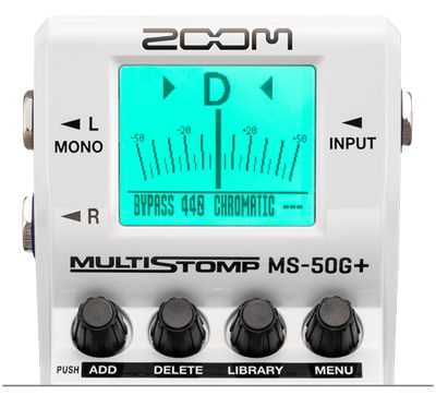 Встроенный в MS-50G+ хроматический тюнер использует цветную подсветку для визуальной передачи информации, чтобы помочь гитаристу настроиться быстрее и точнее. Он поддерживает все стандартные гитарные строи, а также открытые и Drop-строи.