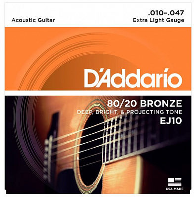 Компания D`ADDARIO первой начала использование бронзы 80/20 (иногда её еще называют латунью) для производства струн для акустических гитар. Струны из бронзы 80/20 известны своим живым ярким звучанием и популярны среди сценических и студийных исполнителей-профессионалов.