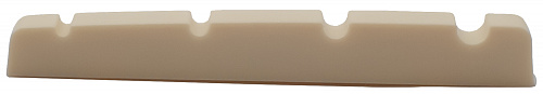 Порожек верхний для 4-струнной бас-гитары из высококачественной пластмассы Цвет - слоновая кость Размеры - 43х3,4х5,3-4,3 мм
