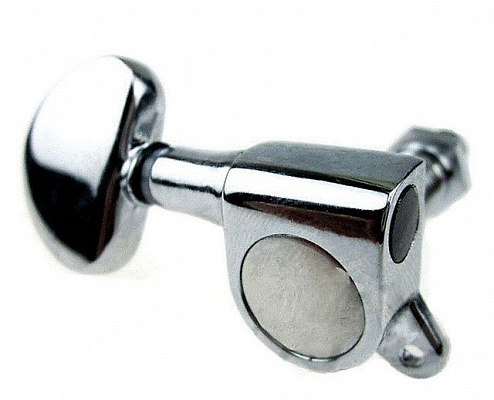 Левый одиночный колок "гровер" вертикальной установки (для акустической гитары) хромированный с хромированной ручкой-грибок, закрытого типа, литой корпус. Без упаковки!