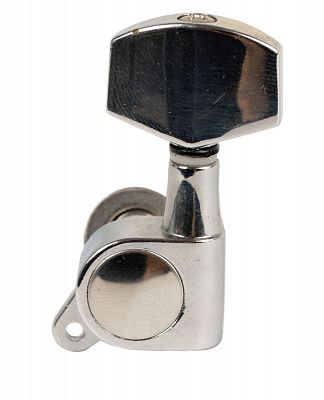 Левый одиночный колок "гровер" вертикальной установки (для акустической гитары) хромированный с хромированной ручкой, закрытого типа, литой корпус. Без упаковки!