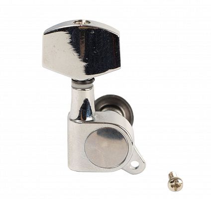 Правый одиночный колок "гровер" вертикальной установки (для акустической гитары) хромированный с хромированной ручкой, закрытого типа, литой корпус. Без упаковки!