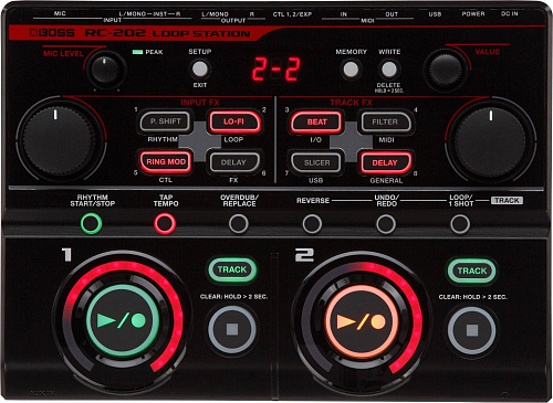 Идеальный выбор для клубных музыкантов, любителей электронной музыки и бит-боксеров, луп-станция RC-202 компании BOSS представляет собой компактный настольный инструмент для работы с лупами и мультиэффектами. Созданный на базе популярного прибора RC-505 Loop Station, двухтрековый RC-202 унаследовал у своего старшего собрата узнаваемый внешний вид и удобный интерфейс, однако также содержит и новые функции. Одновременно можно использовать четыре эффекта Input FX и четыре эффекта Track FX. Кроме того, лупы можно записывать в память в реальном времени, что обеспечивает максимальный творческий простор. Также реализованы расширенное управление от педального контроллера и MIDI-функции — лучший подарок для работающих с лупами музыкантов, играющих на гитаре, клавишных и других музыкальных инструментах.