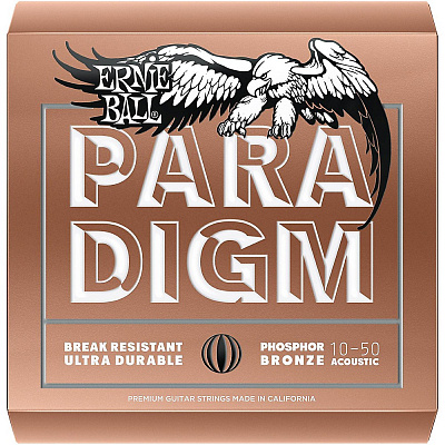 Акустическая серия струн Ernie Ball Paradigm обладает беспрецедентной прочностью и долговечностью, воспроизводя при этом на все 100% звучание и ощущения струн Ernie Ball Earthwood. Для корда струн Paradigm используется высокопрочная сталь, существенно продлевающая жизнь струны, препятствующая её растяжению и обрыву, а дополнительное усиление у основания струн позволяет им пережить даже самую экстремальную манеру игры. Кроме того, в этой серии применена нанотехнология, как в струнах Everlast - специальное полимерное покрытие защищает струны от коррозии и предотвращает накопление скрадывающих тон грязи и жира в оплётке. Paradigm по праву можно назвать первыми долгоиграющими струнами без какого-либо компромисса по звучанию.