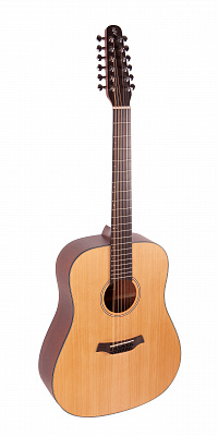 BATON ROUGE L1LS/D-12 – 12-ти струнная акустическая гитара без выреза в корпусе типа дредноут, благодаря чему инструмент имеет широкий динамический диапазон, звучит громко и объемно. Верхняя дека выполнена в корпусе из ели, задняя дека и обечайки – из красного дерева. Данное сочетание материалов делает тембр гитары ярким и звонким. Гриф также сделан из красного дерева, накладка на гриф и сам бридж – из овангкола. У гитары 21 лад, а верхний и нижний порожек (48 мм) выполнены из материала Nubone: упрощенная разновидность материала TUSQ, которая лучше гасит вибрацию струн, лучше передает частоты и гармоники, увеличивает объем звука и обогащает тон.