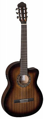 Электроакустическая гитара LA MANCHA Granito 33-SCEN-MB c системой звукоснимателя BR-1 имеет размер 4/4, матовую отделку топа с открытыми порами и струны Savarez. Верхняя дека этого инструмента выполнена из красного дерева, задняя дека и обечайки – красное дерево. Длина мензуры 65 см, сам гриф выполнен из махагона и дополнен накладкой из овангкола, древесины родом из Африки, которая по своим характеристикам похожа на более популярную бубинга.