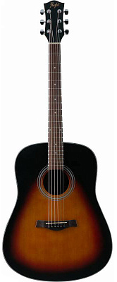 Верхняя дека из ели придает инструменту яркое, звонкое, чёткое и ровное звучание. Нижняя дека и обечайки из сапеле, породы дерева по свойствам очень схожим с красным деревом, благодаря чему звук приобретает мягкость и глубину. Гитара цвета санберст, покрытие - матовый лак.