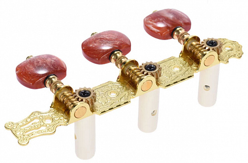 Комплект колковой механики на классическую гитару, позолоченный, ручки красный перламутр. В упаковке!