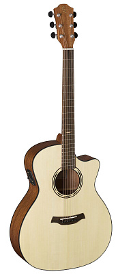 BATON ROUGE AR19S/ACE – электроакустическая гитара с катавеем серии Auditorium. Верхняя дека выполнена в корпусе из цельного массива немецкой ели, нижняя дека и обечайка – из красного дерева. Гриф изготовлен из красного дерева, накладка на гриф и бридж из овангкола. У гитары 20 ладов, а верхний и нижний порожек (43 мм) выполнены из кости.