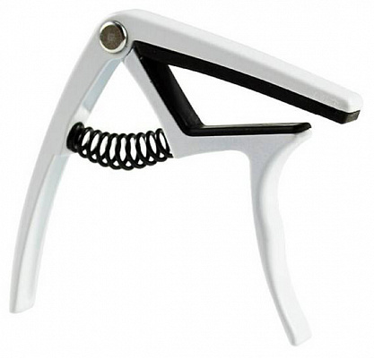 Каподастр на пружине для акустических гитар и электрогитар • Материал: цинковый сплав • Цвет: серебро • В комплекте: медиатор