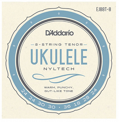 Комплект струн D'Addario EJ88T-8 разработан для 8-струнного тенор укулеле. Все струны комплекта изготавливаются из эксклюзивного материала Nyltech и оптимизированы для настройки GCEA. Струны D'Addario Nyltech, разработанные в сотрудничестве с компанией Aquila, используют несколько эксклюзивных материалов, разработанных для оптимального сочетания теплого, но резкого звучания, комфорта исполнения, точности интонации и стабильности натяжения, не свойственного другим струнам для укулеле.