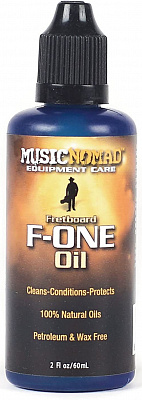 MusicNomad MN105 F-ONE – чистящее масло и кондиционер для накладки грифа гитары. Состоит из 100% натуральных масел. Очищает и защищает поверхность накладки грифа. Не содержит лимонной кислоты, поэтому идеально подходит для нелакированных накладок из палисандра, черного дерева, клена и др. Широко используется профессиональными гитарными мастерскими. Не содержит нефтепродуктов, воска, моющих средств или воды. Быстро высыхает, но сохраняет свои свойства на несколько месяцев.