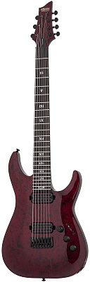 Семиструнная электрогитара Schecter C-7 Apocalypse имеет всё для напористого звучания при игре тяжёлой музыки: качественная электроника с хорошим выхлопом, надёжные материалы изготовления, и апокалиптический дизайн, что немаловажно для создания образа на сцене. Корпус выполнен из болотного ясеня, а гриф – из клёна со вставками из древесины падука, укреплён армированными стержнями из углеродного волокна. На гитаре установлен сет хамбакеров Schecter USA Apocalypse-VII™, две ручки громкости, одна из которых совмещена с отсечкой, ручка тона и трёхпозиционный переключатель звукоснимателей.