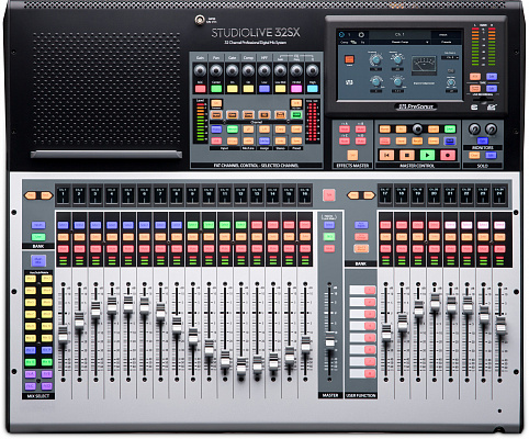 PreSonus StudioLive 32SX - это компактный 32-канальный цифровой микшер, оснащенный двухъядерным процессором PreSonus FLEX DSP, который питает 40 каналов микширования, 26 шин микширования и 286 одновременных процессов, включая 4 системы стерео реверберации и подключаемые модели Fat Channel на каждом входном канале и шине микширования. StudioLive 32SX с 32 микрофонными предусилителями XMAX и 16 балансными выходами микширования объединяет возможности подключения и мощность с эффективным использованием пространства.