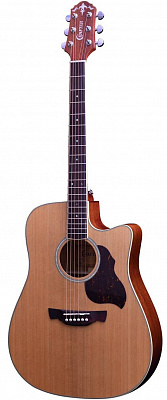 Гитара CRAFTER DE-7/NC – электроакустическая версия популярной модели D-7/NC, доступного по цене инструмента с верхней декой из массива красного кедра. Форма корпуса «дредноут» – это, пожалуй, самая популярная форма акустических гитар. Разработанный компанией Martin в 20-х годах прошлого столетия, «дредноут» до сих пор считается стандартом для вестерн-гитар, который с успехом используется большинством производителей и огромным числом музыкантов, играющих в самых различных стилях. Эти корпуса имеют несколько больший размер, чем классические или оркестровые гитары, а звучание имеет явный акцент на низкие частоты. Верхняя дека CRAFTER DE-7/NC выполнена из массива красного кедра (Red Cedar), что дает гитаре глубокий и мощный звук с большой тональной гибкостью и с фокусировкой на средних частотах. Уникальное отличие этой древесины в том, что гитара сразу имеет более зрелый звук, чем с декой из аналогичной по возрасту ели. Внешне красный кедр имеет благородную текстуру древесины и затемненный цвет, что хорошо подчеркнуто матовым лаком, которым покрыт корпус из красного дерева, обеспечивающий насыщенное и идеально сбалансированное звучание.
