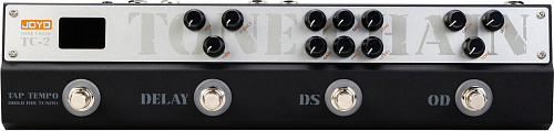 JOYO TC-2 - это многофункциональная педаль эффектов, включающая в себя дисторшн, овердрайв, дилей, эмуляцию кабинета, тюнер, петлю эффектов. Каждый из эффектов включается отдельно, что очень удобно в концертной деятельности и при исполнении разноплановой музыки. Модуль дилея имеет функцию TAP TEMPO - просто нажмите на педальный переключатель темпа и установите необходимое время задержки, ориентируюсь на ритм композиции.