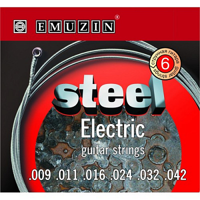 Струны металлические для шестиструнной электрогитары "STEEL ELECTRIC", обмотка из ферромагнитного сплава с никелированным покрытием.