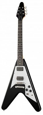 Шестиструнная гитара с корпусом типа «Flying V» из древесины твердых пород. Защитная накладка белого цвета, закрывает большую часть корпуса. Гриф изготовлен из клена, накладка грифа из палисандра. Мензура - 648 мм, 22 лада из сплава меди и никеля. Цвет: черный. Хромированная колковая механика. Колки расположены в два ряда. Гитара имеет три регулятора: один громкости, два тембра и трехпозиционный переключатель. Бридж - Tune-o-matic со стоп-баром. Два хамбакер звукоснимателя.