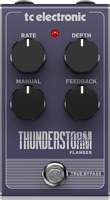 THUNDERSTORM FLANGER обладает широким диапазоном винтажных флэнжер тонов и имеет простую в использовании схему управления, включающую: регулятор Rate, управляющий скоростью модуляции; Depth, управляющий интенсивностью эффекта; Manual, контролирущий время задержки эффекта; и Feedback, который устанавливает тип и количество резонанса. Нет ничего проще!