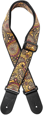 Гитарный ремень с рисунком Paisley • Материал: нейлон • Кожаные наконечники с выгравированным логотипом • Регулируемая длина: 82-141 см • Ширина: 5 см • Цвет: оранжевый