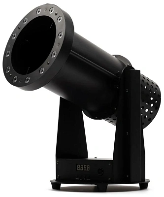 Компактный генератор конфетти выдувного типа. Особенностью модели является наличие встроенного мощного RGB прозектора, который подсвечивает вылетающее конфетти. Регулируемый угол наклона позволяет выдувать конфетти до 5 метров вверх и до 5.5 метров вперед. Имеет удобное беспроводное управление с помощью пульта ДУ, а так же возможность подключения по DMX.
