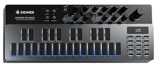 Donner B1 - Это футуристический бас-синтезатор с двухоктавной силиконовой клавиатурой с подсветкой и набором ручек. Интуитивно простой и понятный интерфейс прекрасно подойдет не только для профессионалов, но и для только начинающих свое знакомство с аналоговыми синтезаторами.