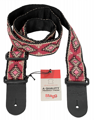 Гитарный ремень с ромбовидным узором • Материал: нейлон • Кожаные наконечники с выгравированным логотипом • Регулируемая длина: 82-141 см • Ширина: 5 см • Цвет: красный