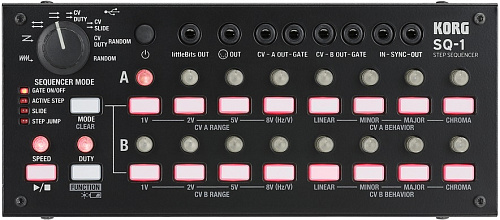 Korg SQ-1 имеет два канала (A и B) 8-ми шагового секвенсора, которые могут работать последовательно или использоваться во множестве других режимов. Например, можно запустить оба канала, следующие друг за другом, чтобы SQ-1 работал как 16-ти шаговый секвенсор. Можно игнорировать порядок и заставить шаги воспроизводиться в случайном порядке или использовать каналы A и B для управления различными параметрами, когда они выполняются параллельно. Вы можете выбирать из множества режимов: от воспроизведения самых простых последовательностей до сложных многослойных.