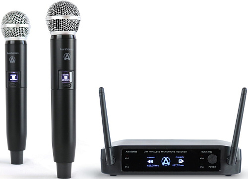 Двойная микрофонная радиосистема AuraSonics DUET 20S2 представляет собой современное решение для выступлений, будь то пение со сцены, лекция, детский утренник, семейный праздник или пение в караоке. Комплект радиосистемы включает два ручных микрофонных передатчика и блок с двумя приёмниками. Таким образом один комплект AuraSonics DUET 20S2 может обеспечить одновременное выступление сразу двух участников. В микрофонах использован динамический кардиоидный капсюль, специально предназначенный для пения и речи. Чувствительность вокального динамического капсюля предполагает близкое использование микрофона, что предотвращает возникновение обратной связи в виде громких тональных призвуков в условиях усиления звука акустическими системами зала.