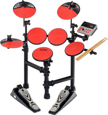 SOUNDKING SD50 - это недорогая портативная электронная ударная установка для обучения и игры дома, в студии и на вечеринках. Обширная библиотека звуков, функция записи, пэды с реалистичным отскоком, вход для подключения внешних аудиоустройств, выход на наушники, а также аудиовыход для подключения к акустической системе - все это делает барабанную установку SD50 действительно универсальной.