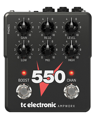 Среди дополнительных функций V550, включена схема Boost, которая значительно повышает его универсальность в реальных сценариях. Чтобы максимизировать его универсальность, реализована режимы PRE и POST. В режиме POST схема Boost работает как усиление громкости, повышая выходной уровень без каких-либо изменений основного тона. Он просто обеспечивает прозрачное и чистое увеличение громкости, позволяя вашему оригинальному звуку проявиться. Переключение в режим PRE перемещает бустер в сигнальную цепь перед модулем моделирования усилителя. Данный сетап драйвирует усилитель с большей интенсивностью, имитируя эффект винтажного лампового скримера, установленного перед усилителем. Благодаря этим двум режимам схема Boost дает вам возможность точно настроить тон в соответствии с вашими предпочтениями. Хотите ли вы чистого буста громкости или изысканного драйва в винтажном стиле, V550 позволит вам добиться идеального звука, соответствующего любому музыкальному путешествию.