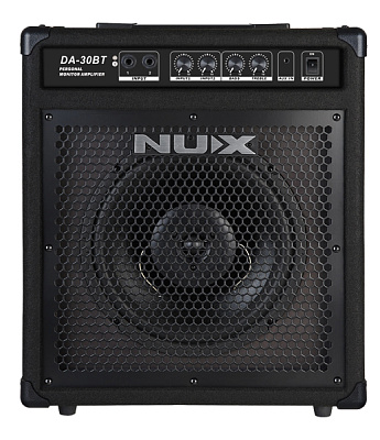 NUX DA-30BT оснащен усилителем мощности 30 Вт, 10-дюймовым полнодиапазонным динамиком, частотные характеристики которого значительно соответствуют частотам различных барабанных инструментов. DA-30BT разработан в дизайне с оптимизированной схемой, яркими высокими частотами, тенором и полноценным басом. Имеются две кнопки регулировки частоты: treble, bass, обеспечивающие пользователю лучшую настройку. DA-30BT оснащен Bluetooth подключением, что позволяет музыканту проще играть свои песни с усилителем.