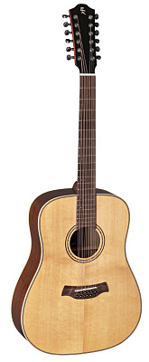 BATON ROUGE X34S/D-12 – 12-струнная акустическая гитара в корпусе типа дредноут. Верхняя дека выполнена из цельной ели, нижняя дека и обечайка – из ореха. Гриф изготовлен из окуме, накладка на гриф и сам бридж – из лавра. У гитары 21 лад, а верхний и нижний порожек (48 мм) выполнены из кости.