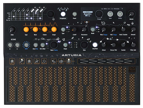 Под внешним видом MicroFreak Stellar вы обнаружите сверкающие цифровые и волновые осцилляторы, сочетающиеся с вельветовым аналоговым фильтром. Уникальная PCB клавиатура с поли-послекасанием сочетается с причудливым арпеджиатором и секвенсором. Погрузите свой микс в звуковую истерику с помощью Erratic Mod матрицы или уникальных Spice & Dice рандомизаторов. MicroFreak - непредсказуемый инструмент для любителей приключений, прилив адреналина для музыканта, ищущего острых ощущений, потрясающий инструмент, который заставит сбиться с пути и мыслить по-другому.