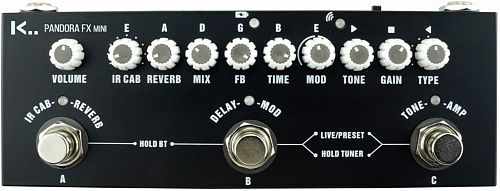 PANDORA mini FX - это портативный гитарный процессор эффектов. На верхней части корпуса установлены три набора модулей, которые можно редактировать и сохранять, а методы работы с прибором просты и интуитивно понятны. Процессор эффектов имеет встроенный аккумулятор емкостью 600 мАч, который решает проблему длинных кабелей питания. PANDORA mini FX имеет 9 встроенных IR-импульсов классических усилителей, два эффекта модуляции (хорус и фэйзер), дилей, реверберацию и восемь IR-импульсов классических моделей кабинетов. Кроме того, PANDORA mini FX оснащен функцией записи на мобильный телефон. Устройство объединяет в себе множество эффектов и функций, небольшой размер, хорошую производительность, портативность и отличный звук!