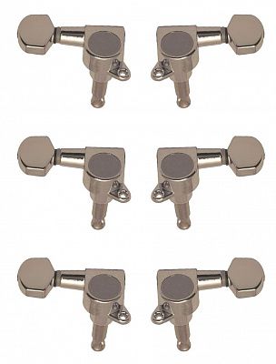 Колки для гитары • Тип: 3 левых + 3 правых • Ручки (лепестки): прямоугольные 19,2 мм • Крепежная площадка: 45° • Цвет: хром