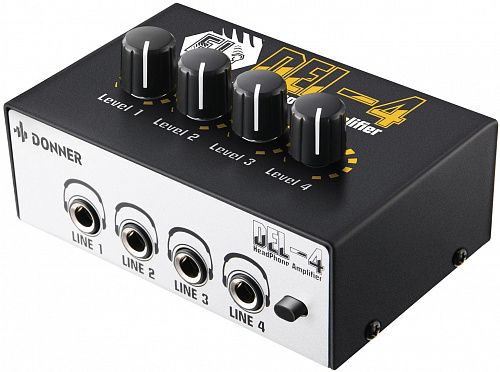 DONNER DEL-4 оснащен высококачественной аналоговой схемой, высокой выходной мощностью и качеством звука с низким уровнем искажений! Когда вы и ваши друзья используете общий источник звука, каждый сможет независимо регулировать громкость своих наушников.