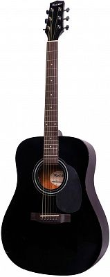 Размер: 41" Форма корпуса: дредноут Верхняя дека: ель Задняя дека и обечайка: красное дерево Лады: 20 Колковая механика: хромированная Цвет: черный