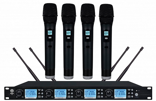 • В комплекте 4 ручных микрофона и база-приемник