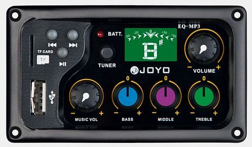 JOYO EQ-504 - это 3-полосный эквалайзер со встроенным плеером. Воспроизведение возможно с карты памяти Micro SD, также есть поддержка подключения iPod/iPad/PC по USB. Идеально подходит для выступления и практики. В комплекте пьезо-звуосниматель для установки под порожком, отсек для батарейки, совмещенный с разъемом для подключения кабеля.