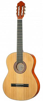 Homage LC-3910 - полноразмерная классическая гитара. Верхняя дека данной модели выполнена из ламината ели. Задняя дека и обечайки - из липы. Удобный широкий гриф сделан из клена, накладка - из фанеры. Гитара выполнена качественно, с вниманием к деталям, подойдет для начинающих гитаристов.