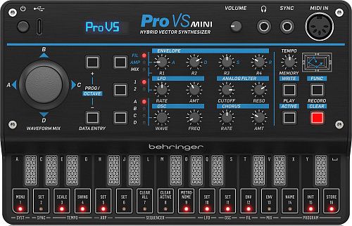 Будучи векторным синтезатором, PRO VS MINI имеет 4 осциллятора, которые можно изменять и микшировать с помощью джойстика, создавая довольно необычные звуки. Благодаря 27 сенсорным клавишам PRO VS MINI также обеспечивает максимальную удобство игры в компактном форм-факторе. В сочетании с легко программируемым 16-ступенчатым секвенсором, студийным хорусом, индивидуальными огибающими для фильтра, усилителя и генератора, а также двумя НЧ-регуляторами вы получаете универсальное, мощное и компактное устройство для формирования звука, которое легко впишется в вашу систему.