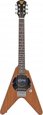 Уменьшённая, компактная, созданная специально для путешествий либо для головокружительных джемов на природе, на сцене, а так же для поездок в которых вы не хотите прекращать свои занятия. Гитара оснащена прямым выходом для наушников. Ну а если вы хотите использовать сторонний усилитель, просто подключите гитару через специальный инструментальный выход и вы будете удивлены как может звучать эта 610-миллиметровая малышка не уступающая полно мензурным инструментам. Всё из за фирменного датчика (рельсового хамбакера) встроенного у самого бриджа. Фирменный чехол в комплекте.