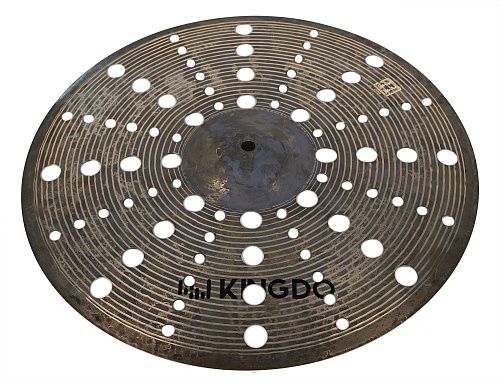 Тарелки KINGDO COLLECTION EXTREME EFFECT имеют сухой, "грязный" звук с быстрой атакой и быстрым затуханием, благодаря множеству отверстий, отделка поверхности, натуральная