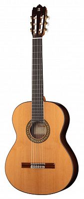 Четыре слоя легкого лака подчеркивают текстуру верхней деки изготовленной из западного красного кедра (туи складчатой) и великолепный ламинат палисандра задней деки и обечайки. Накладка грифа из замечательного черного дерева. Колковая механика замечательного качества, обеспечивает точную и плавную настройку гитары.