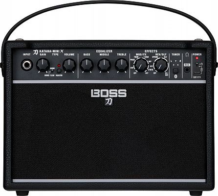 В Katana-Mini X используются универсальные усилители, заимствованные из легендарной серии усилителей сценического класса Katana. Доступны три основных звука усилителя, а также вариации тембра, доступные с помощью переключателя на панели. Один из вариантов - это неокрашенный чистый звук при использовании Katana-Mini X с акустической, электрической гитарой или басом.